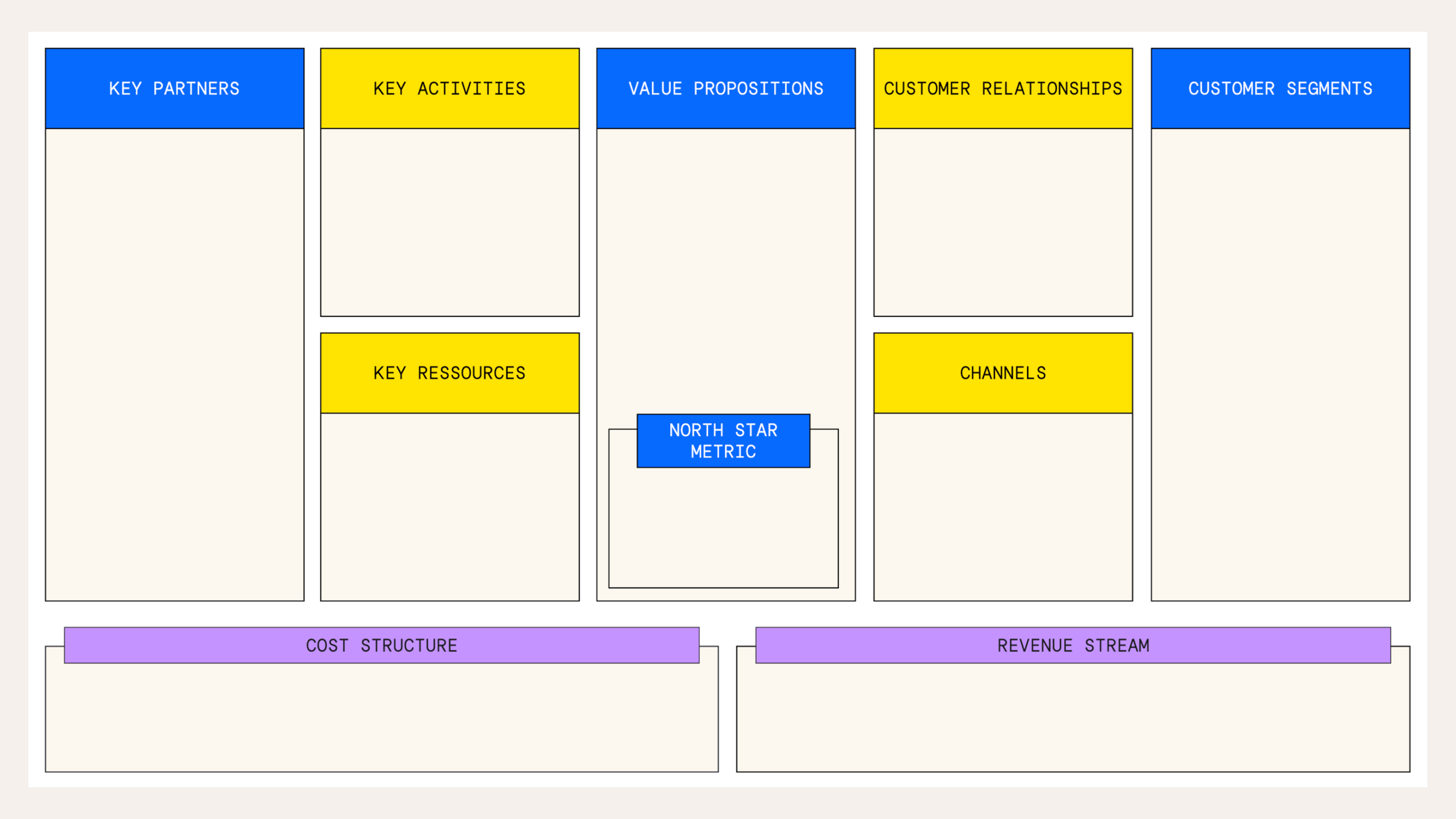 Auf der Business Model Canvas (siehe Abbildung) betrifft diese Perspektive jedoch lediglich die linke Hälfte, die Kostenseite. Wir nennen diese Herangehensweise deshalb „Efficiency Track“. Hierbei ist der Output gut kalkulierbar, der Ressourceneinsatz überschaubar und es kann sich häufig bestehender KI-Tools für den jeweiligen Use Case bedient werden. In Kurzform: Prozess X wird durch Tool Y übernommen und spart uns somit Summe Z.