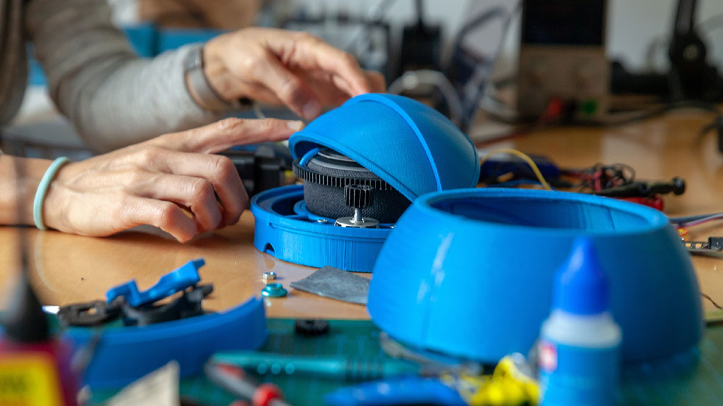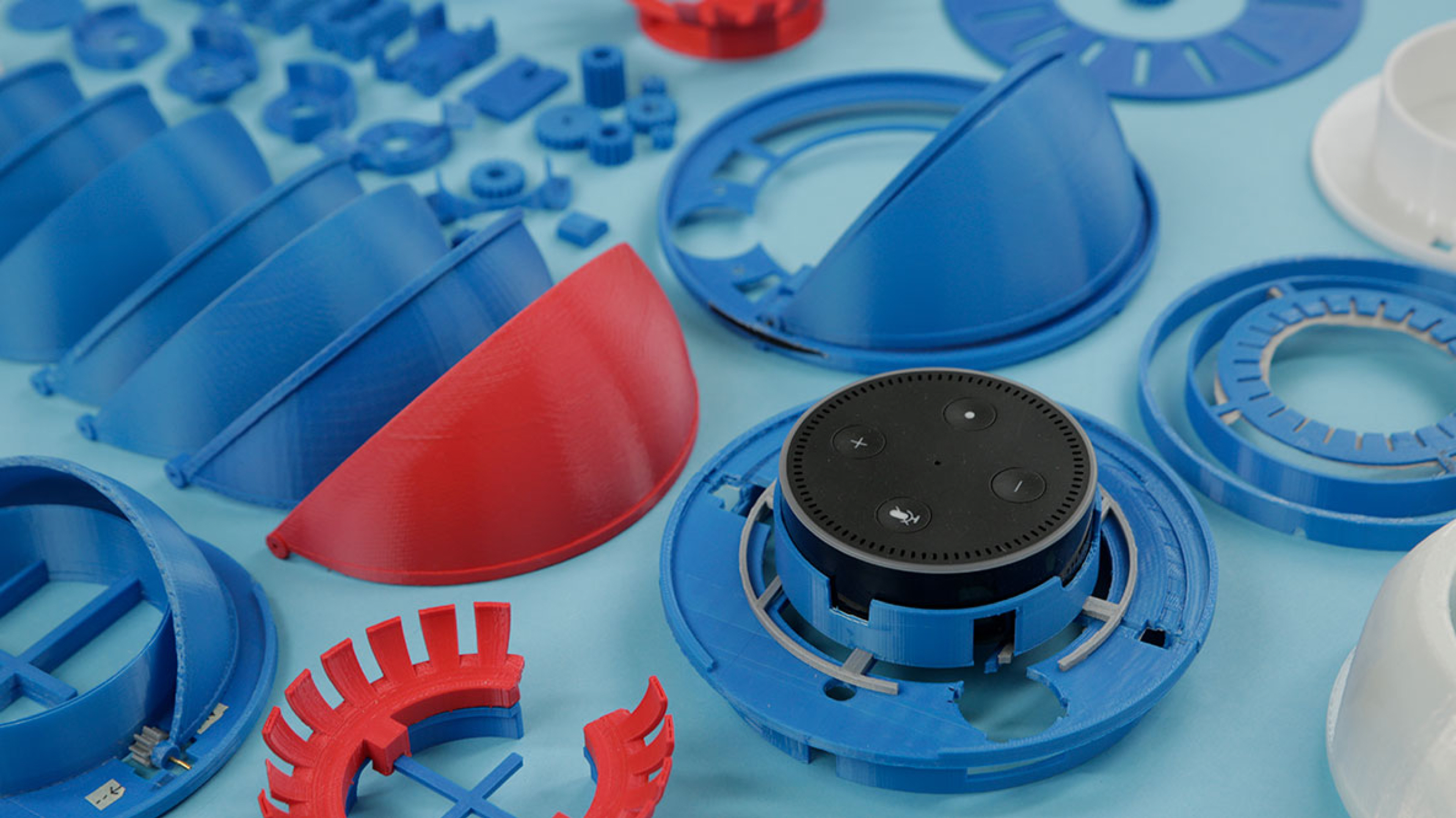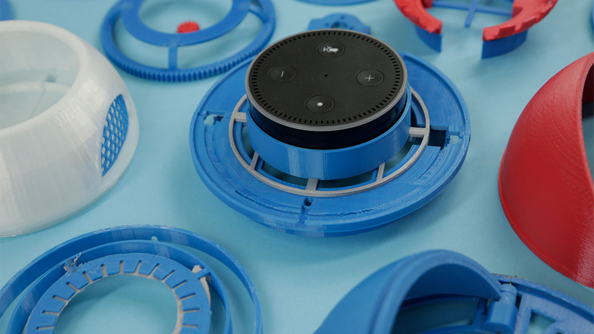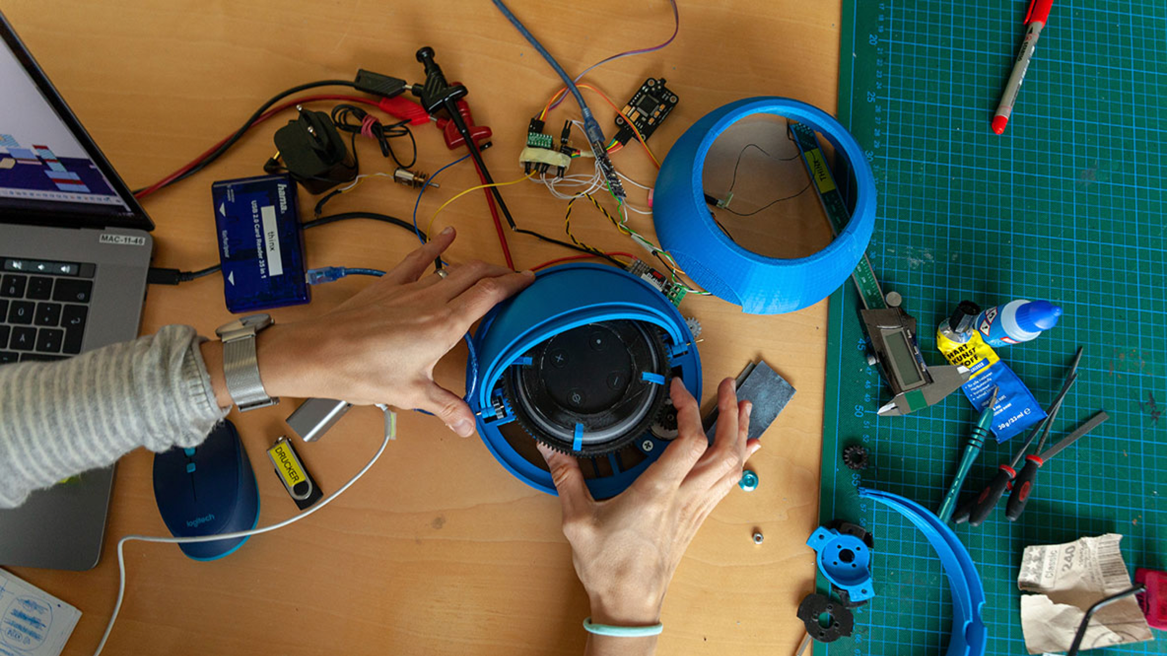 And we completely underestimated how well Alexa listens. To "switch off" the eight microphones temporarily, we tried noise cancelling, magnetic fields, white noise and much more. Nothing worked. After numerous tests and prototypes we found the solution: We distorted the sound recordings by direct noise on the microphones and packed the motorized unit in a case.